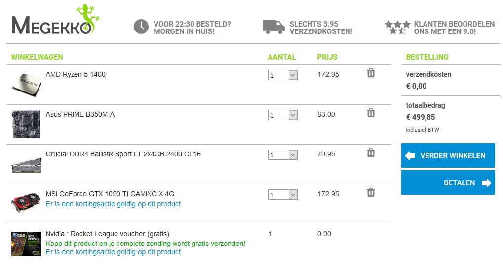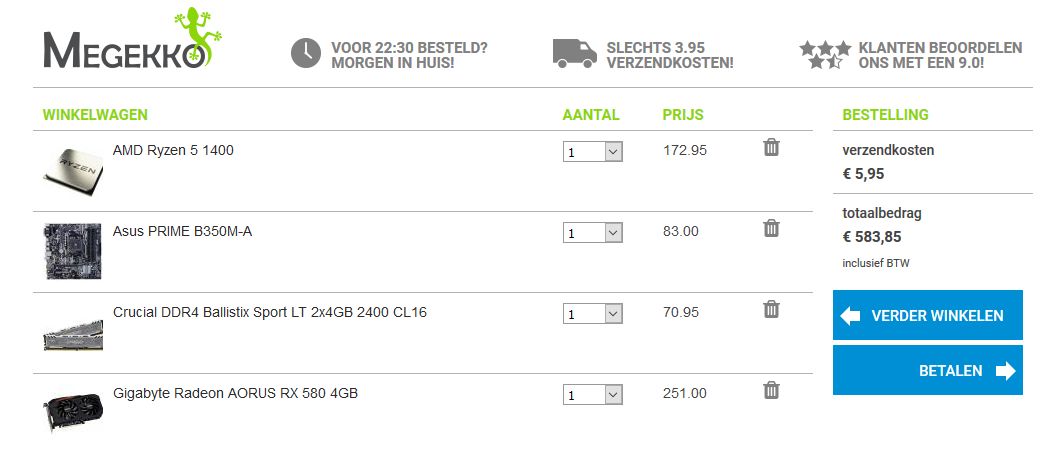 Heb deze builds samengesteld bij megekko.nl doordat zij toch met sommige onderdelen goedkoper zijn. En soms zelfs gratis verzending geven.