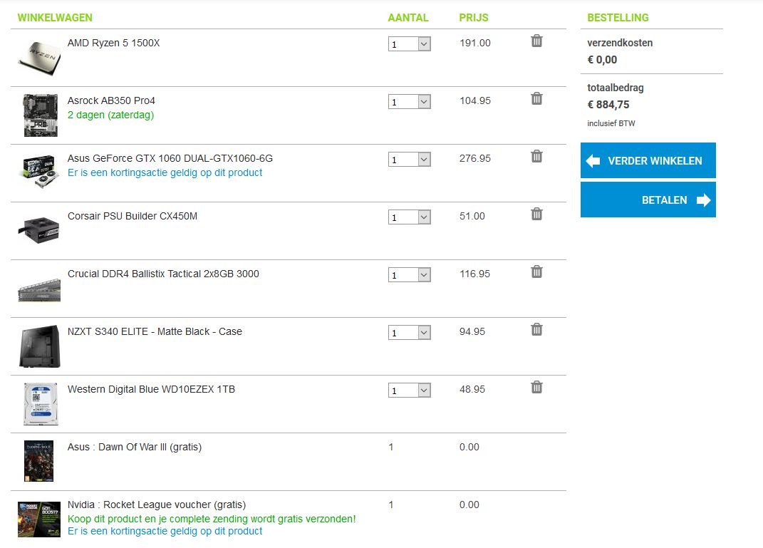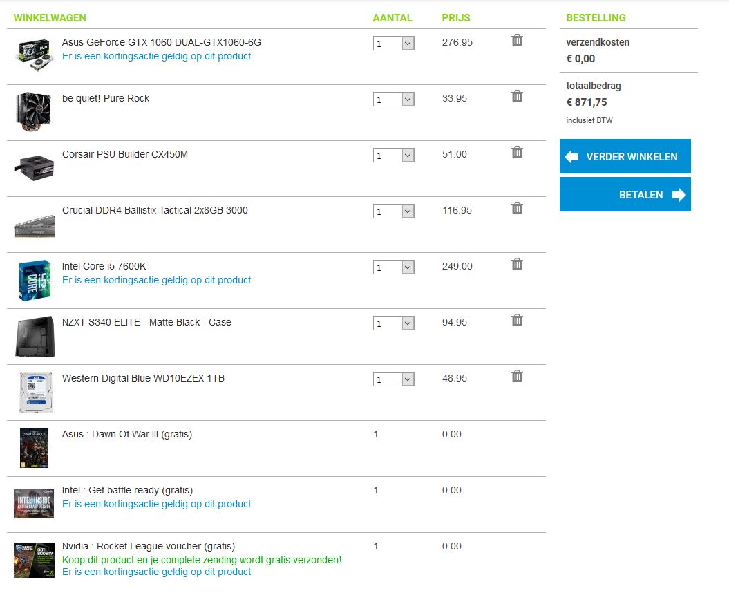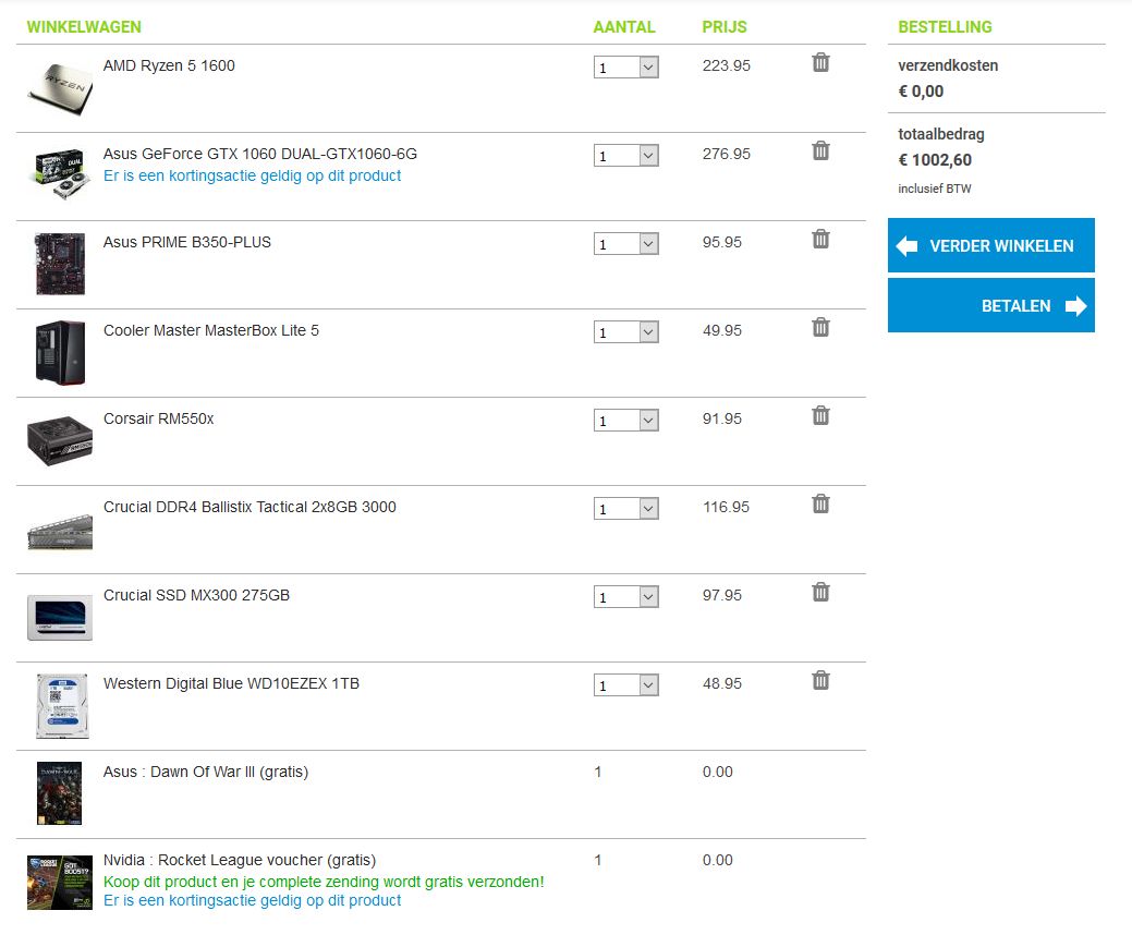 EDIT: Dit zou systeem zou ik dan kopen. Met het oog op 1080p gaming. Indien je op 1440p zou willen gamen zal je wel een GTX1070 moeten kiezen i.p.v. een GTX1060.