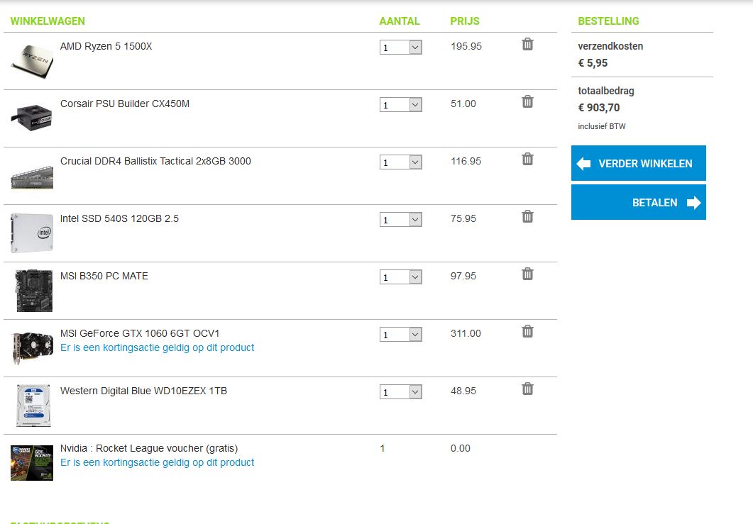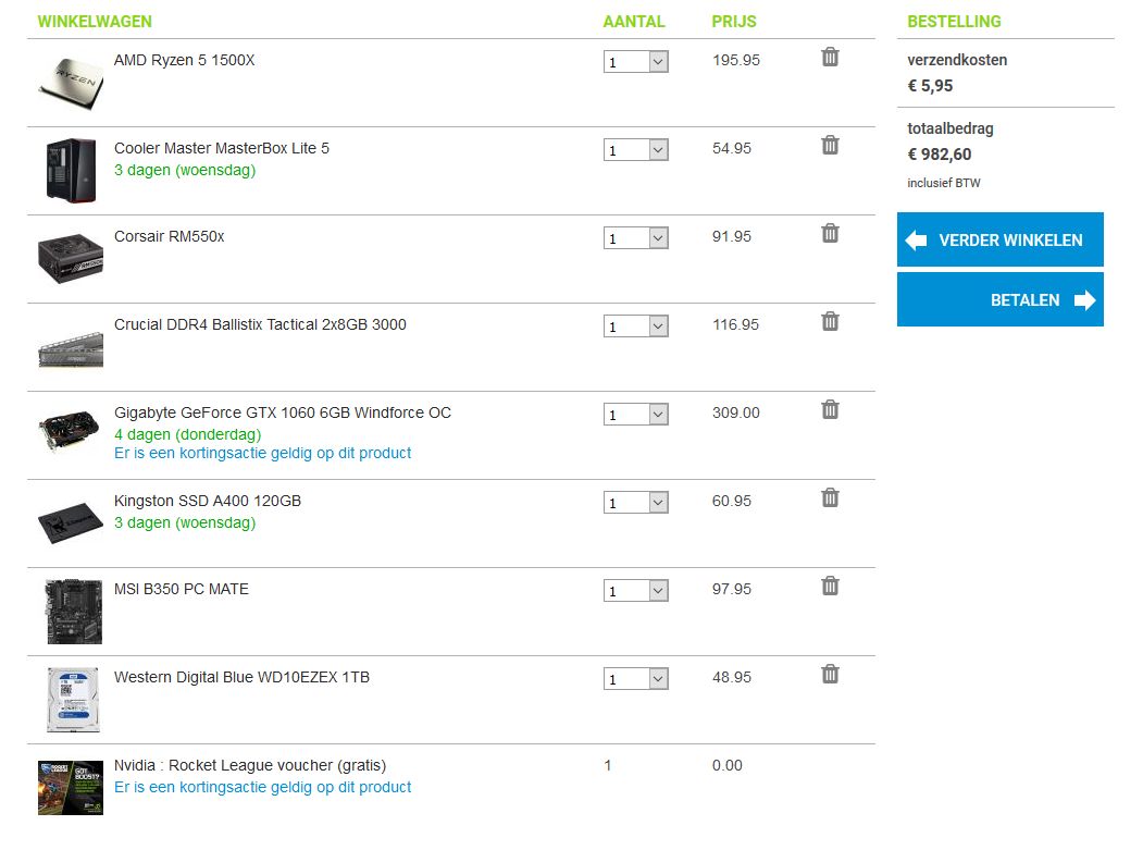 Betere prijzen dan megekko.nl ga je niet vinden. Zou de onderdelen echt niet bij Alternate bestellen, je gaat een pak meer kwijt zijn.