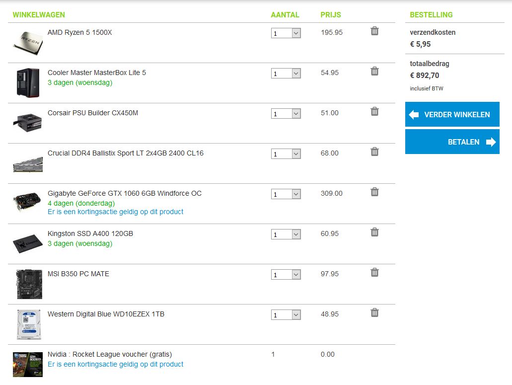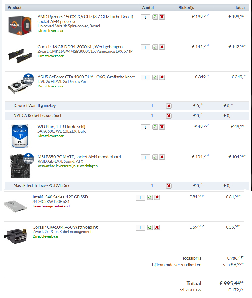 Heb een voorbeeld build samengesteld bij megekko.nl. Daar dat zij goedkoper zijn dan andere winkels en hebben ook goedkope verzendkosten.
