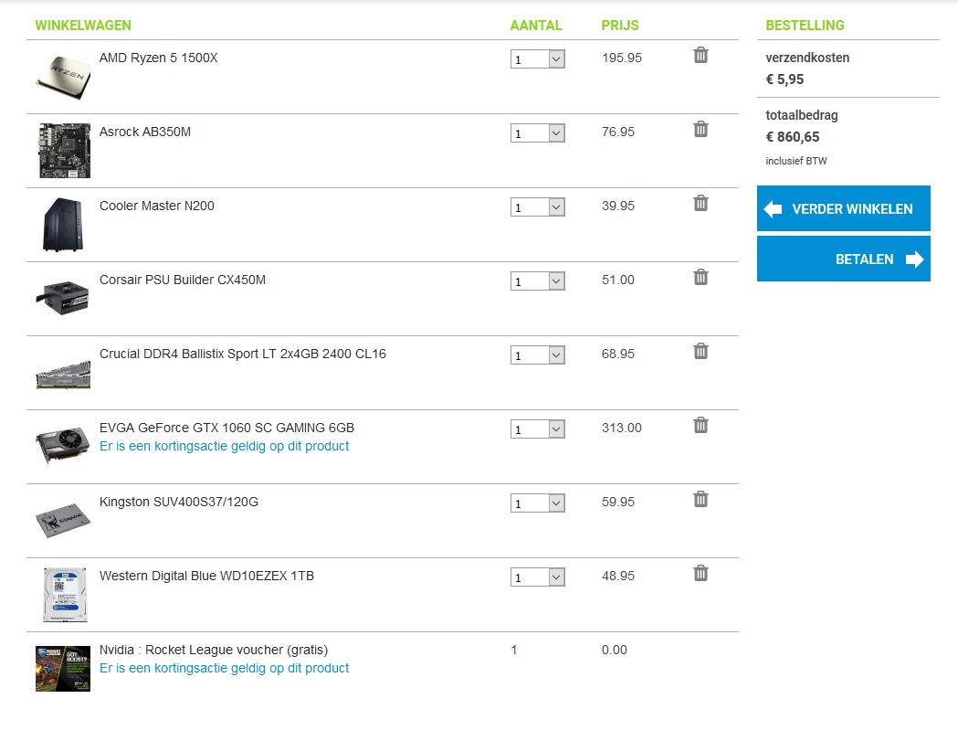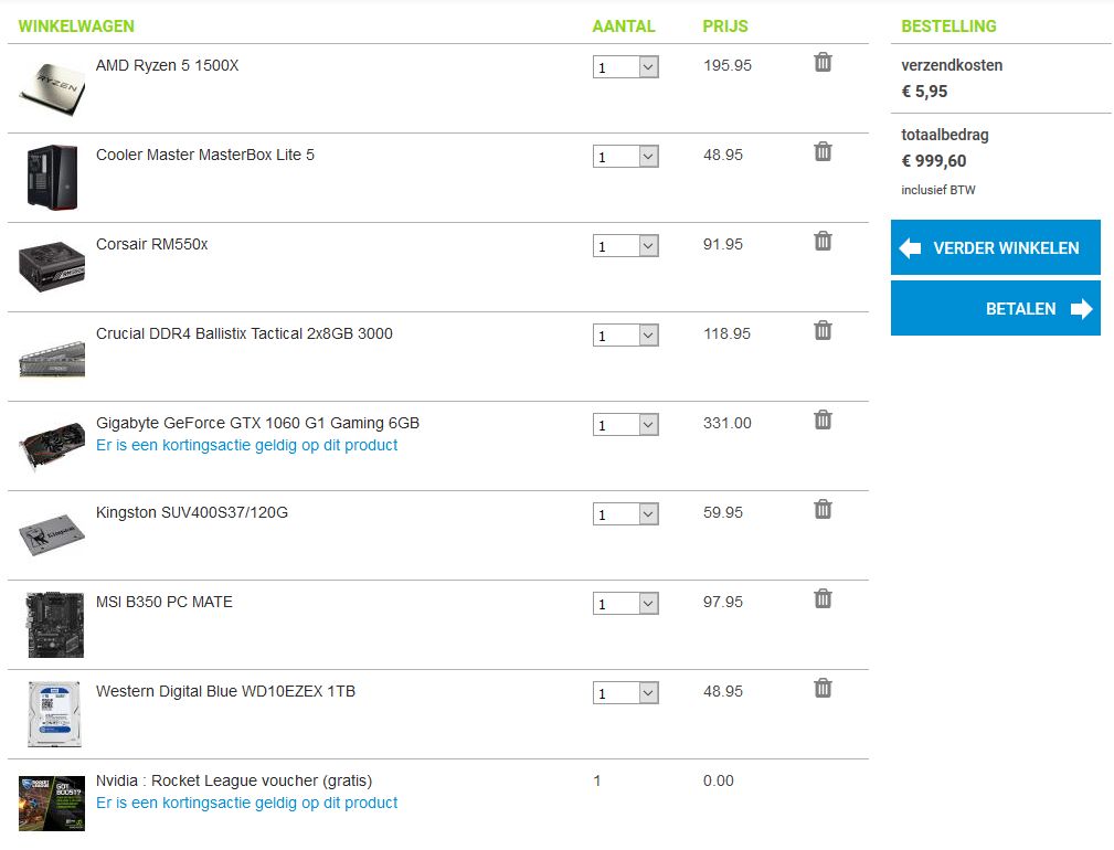 Heb een build samengesteld met max. €1000 budget. Heb de onderdelen gekozen bij megekko.nl omdat zij toch goedkoper zijn dan de meeste winkels.