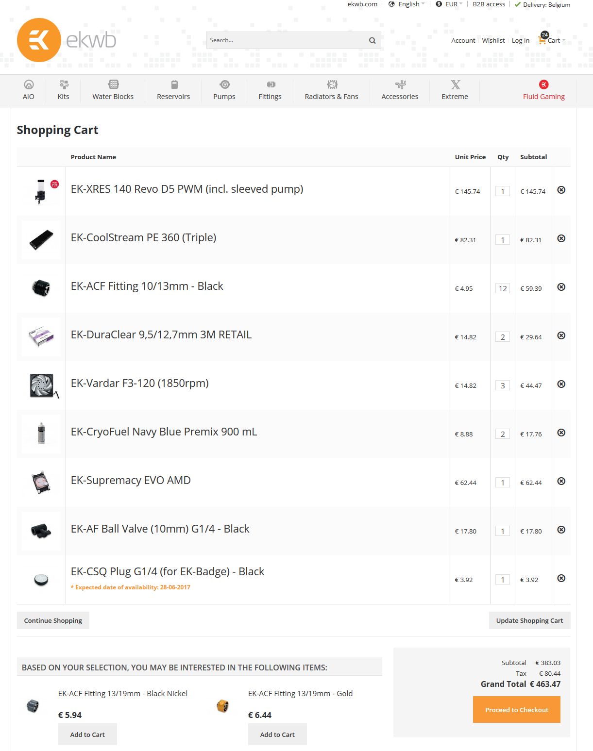 Reken maar een goeie €500 bovenop voor deftige waterkoeling onderdelen. Tenzij je wat aanpassingen doet.Last edited by Ascari; 26-06-2017 at 22:49.