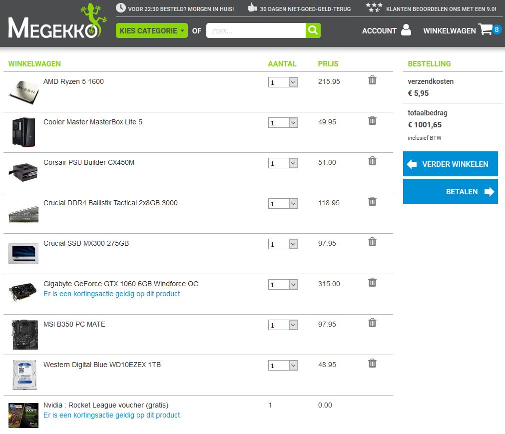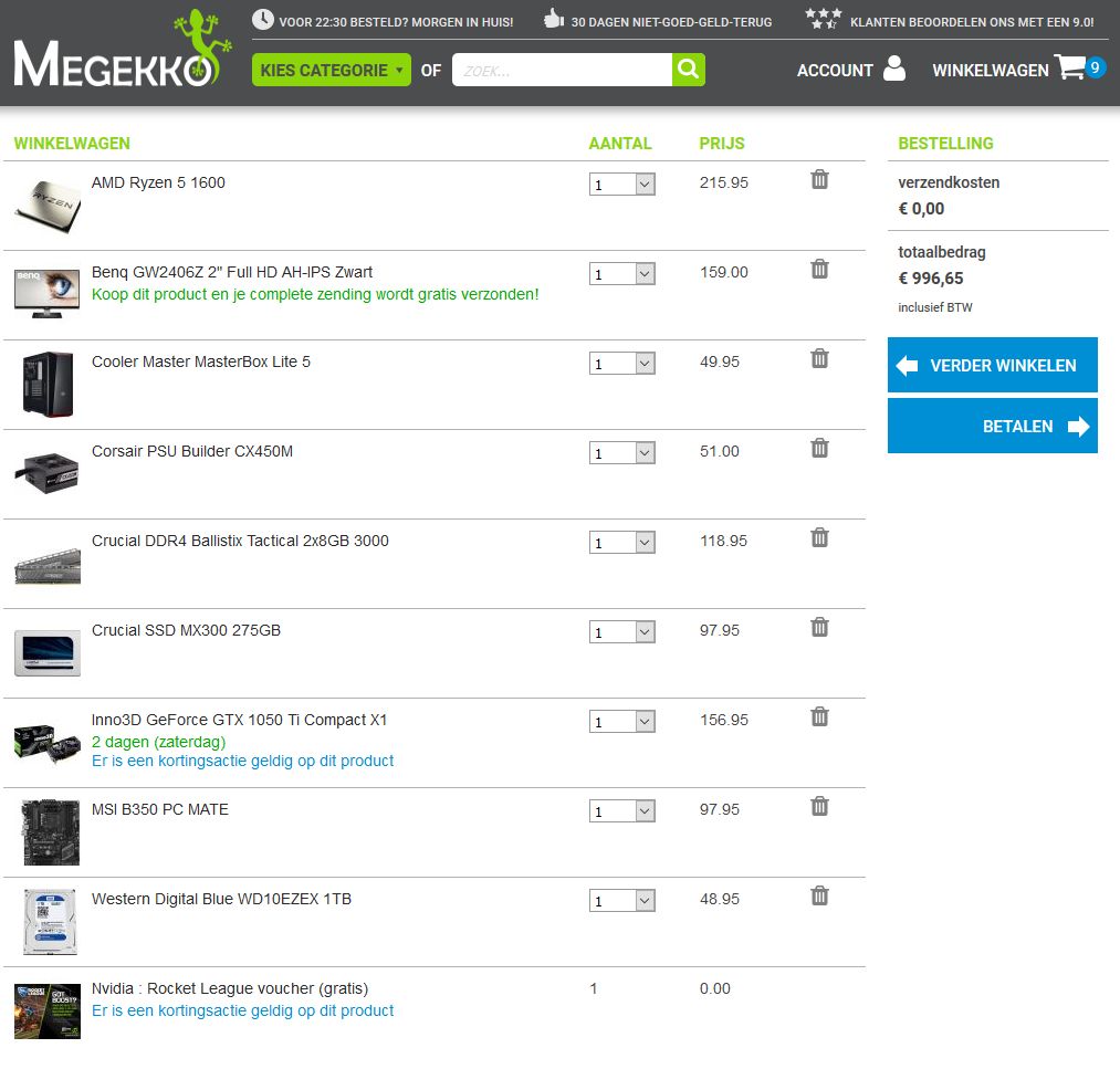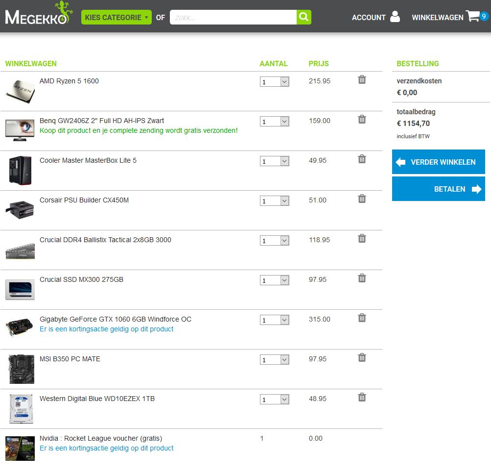 De website waar ik de onderdelen heb samengesteld is megekko.nl. Doordat de prijzen goedkoop zijn en de verzendkosten naar België vrij laag zijn.