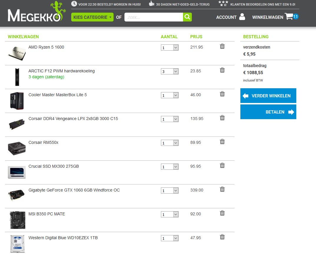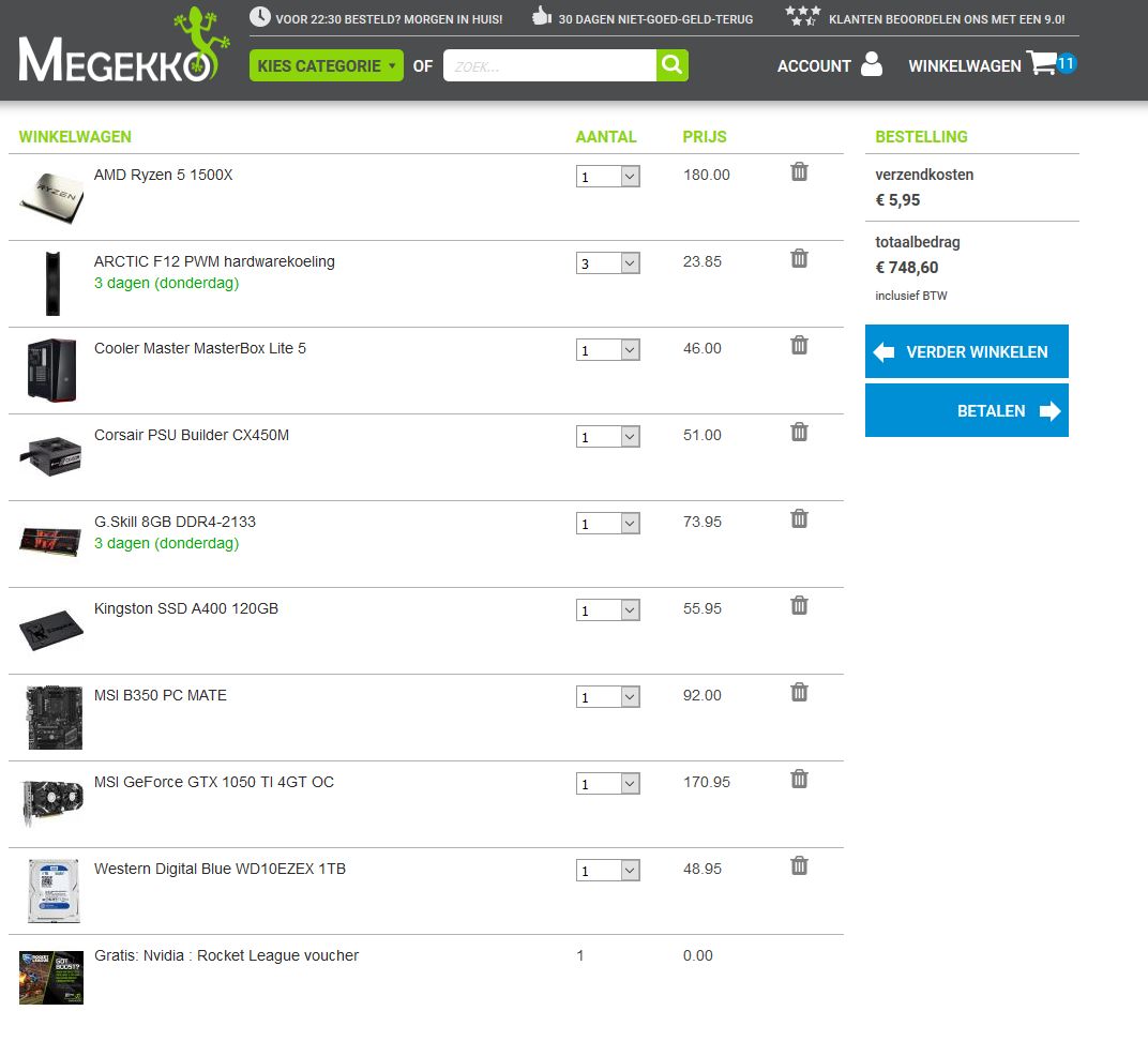 Zelfde componenten kosten bij azerty €1.162,26 incl. verzending en verwerkingskosten.