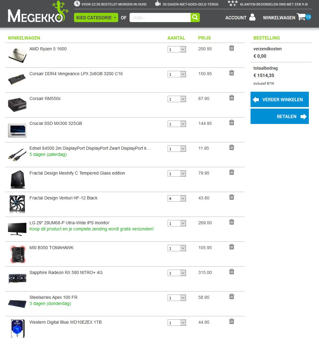 Heb een voorbeeld samengesteld bij megekko.nl, omdat zij toch een pak goedkoper zijn dan Alternate of Tones.