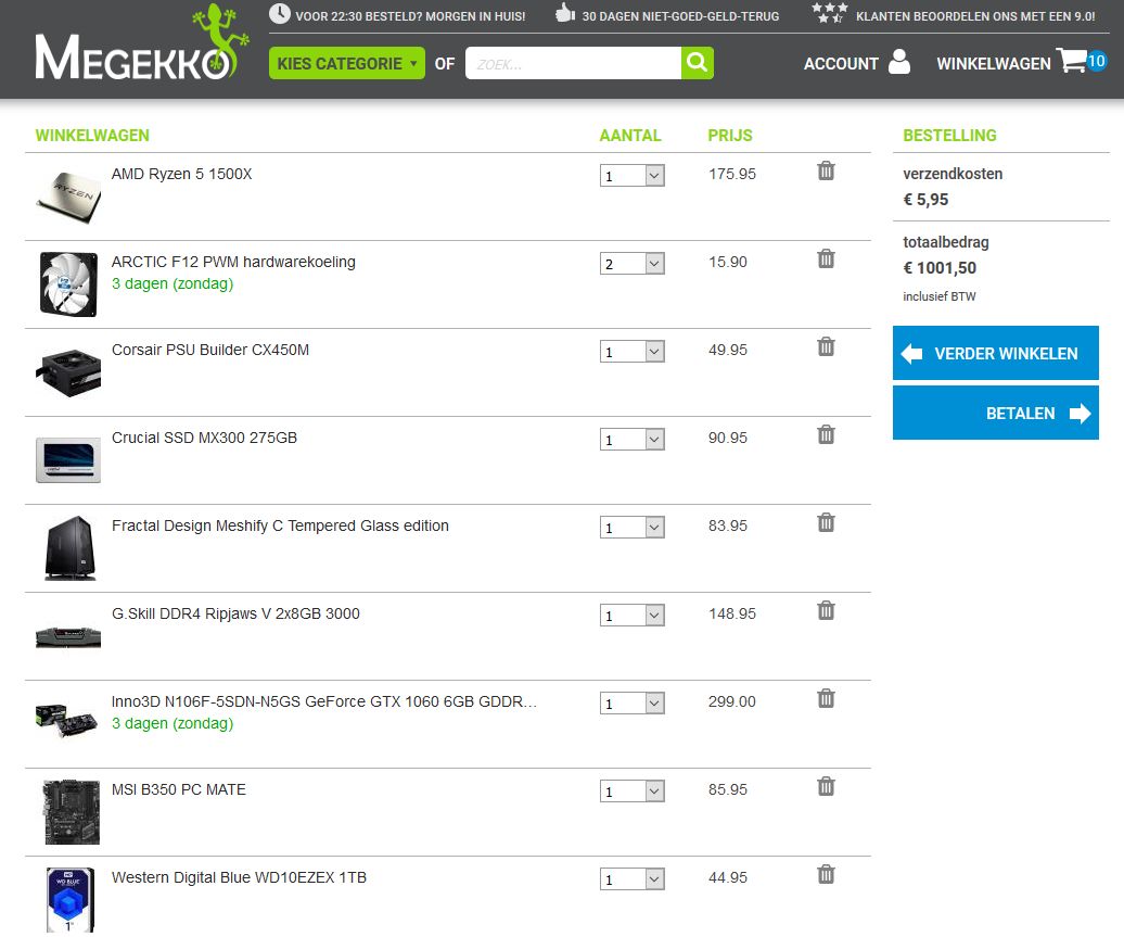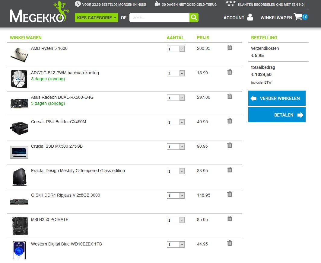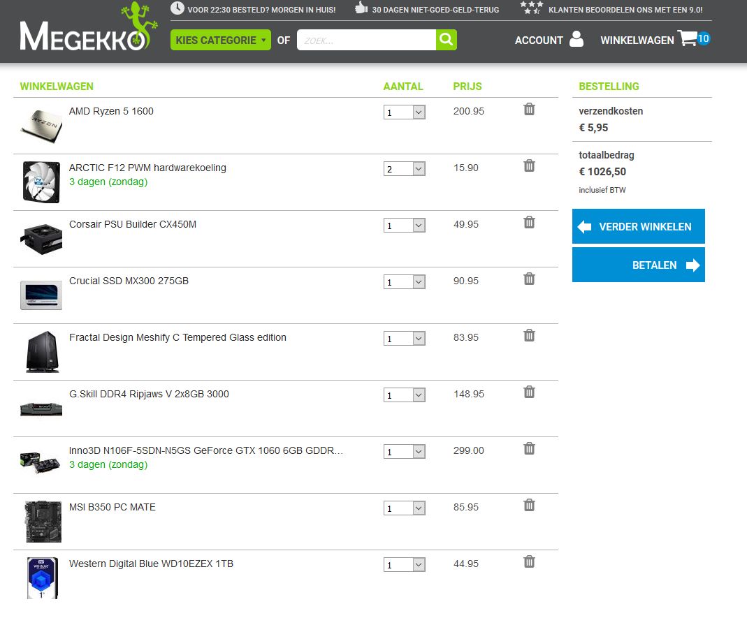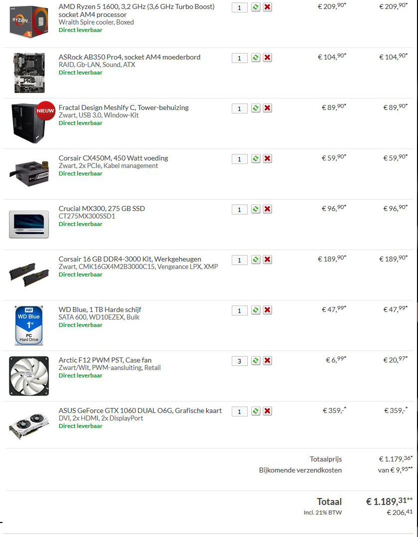 Persoonlijk zou ik die niet bij alternate bestellen, je gaat €100+ extra kwijt zijn voor dezelfde onderdelen. Helaas zijn ze niet echt meer de goedkoopste.