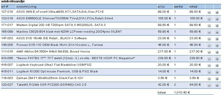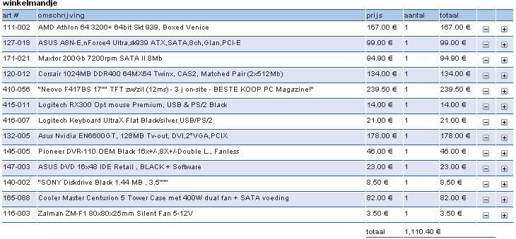 anyways, morgen gaan we hem bestellen dus en ik zal het dan ook ff aankaarten dat ie niet zoveel geld moet uitgeven als ie wil (begrijp me dus niet verkeerd, ik vind het ook veel geld voor een nongame-pc)no votes