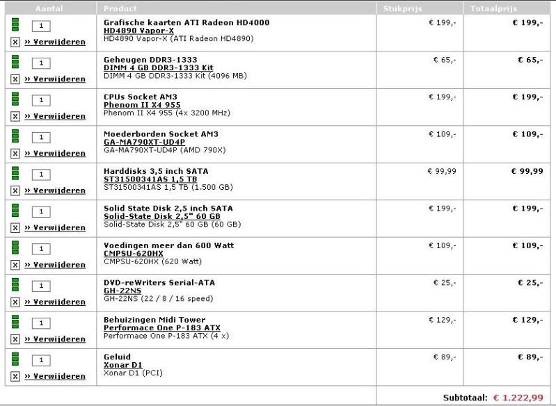 graka: ipv die GTX285 de ATI 4890 pakken, die scheelt enorm in prijs en is amper langzamer, met een kleine OC is die al sneller.
