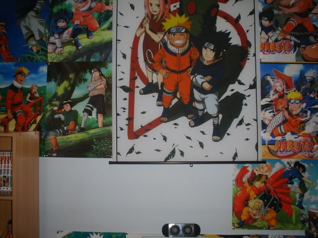Heb zo een beetje de indruk dat je om als echte 'anime-fan' verplicht bent om je kamer te verminken. Ik heb één poster hangen van HxH, vrij groot en zwart-wit zodat hij bij de rest van mijn kamers past.