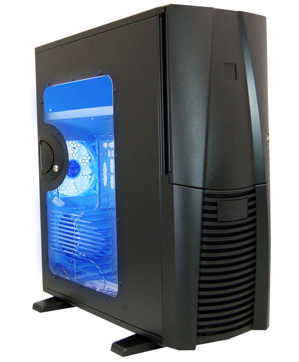 Case: Antec Plusview II (de klep om de voorkant te openen om de knoppen in te drukken is er af)