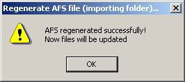 - Klik op Regenerate AFS! : screen , kiest O_text.AFS en bevestig om te overschrijven.