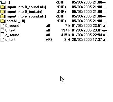 That's it, wat betreft de 0_text.AFS, hetzelfde doe je met de O_sound.AFS en de E_sound.AFS. Vergis u niet van folder of AFS file als je importeerd!