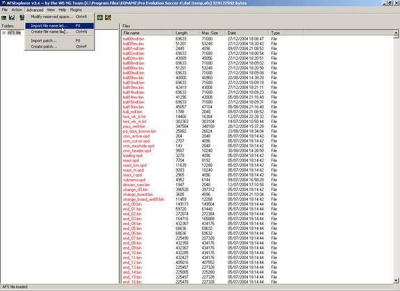 - Ga naar de installatiemap van PES 4 dan naar de map "dat" en kies '0_sound.afs' (negeer foutberichten)