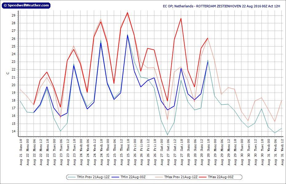 Valt beetje tegen, lijkt wel mooie week te worden volgende week, en hoewel het nog niet zeker is, lijkt het voor volgend weekend alweer gedaan te zijn met het mooie weer. Nu, zitten nog vier mooie dagen in en twee hittedagen. Als je nog wat vakantiedagen over hebt, neem dan van dinsdag tot donderdag en evt. vrijdag verlof zou ik zeggen. Dinsdag meest aangename dag volgens mij, maar niet de warmste.