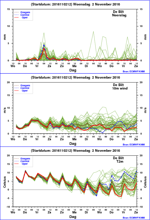 Verwachte temperaturen voor Brussel volgende week (op basis van de laatste ECMWF run), behoorlijk koud dus (als het uitkomt!):