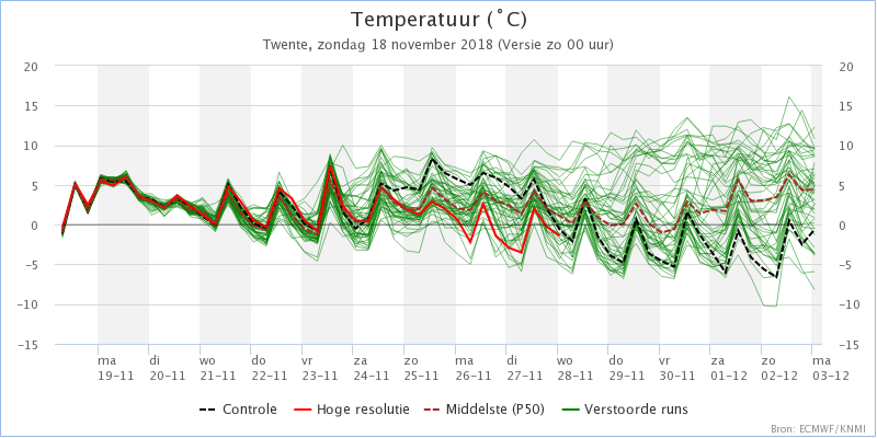 Bij EC gaan Oper en Control voor een compleet ander scenario. En ook in de UKMO longe range verwachting zit de twee split er ook in. Misschien "tijdelijk zachter", misschien ook niet, maar volgens hen sowieso wat er ook gebeurt wellicht terugkeer naar kouder weertype rond tweede / derde week december.