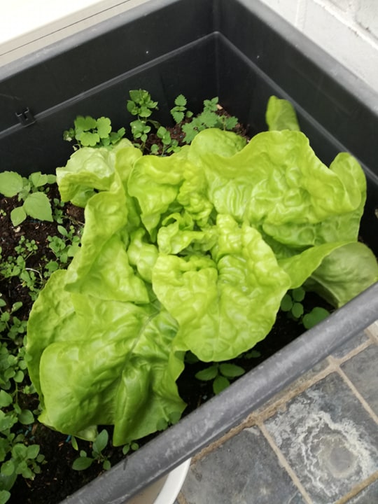 Toch verrast dat die sla zo ging groeien in zo mini kweekbak.