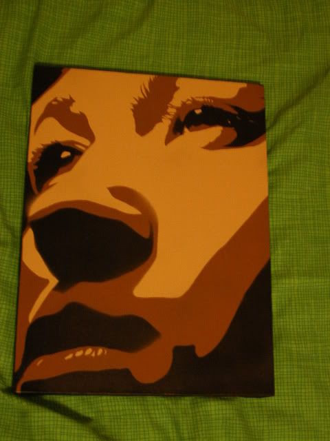 Schilderij 2 en 3 zijn spraypaint op doek.